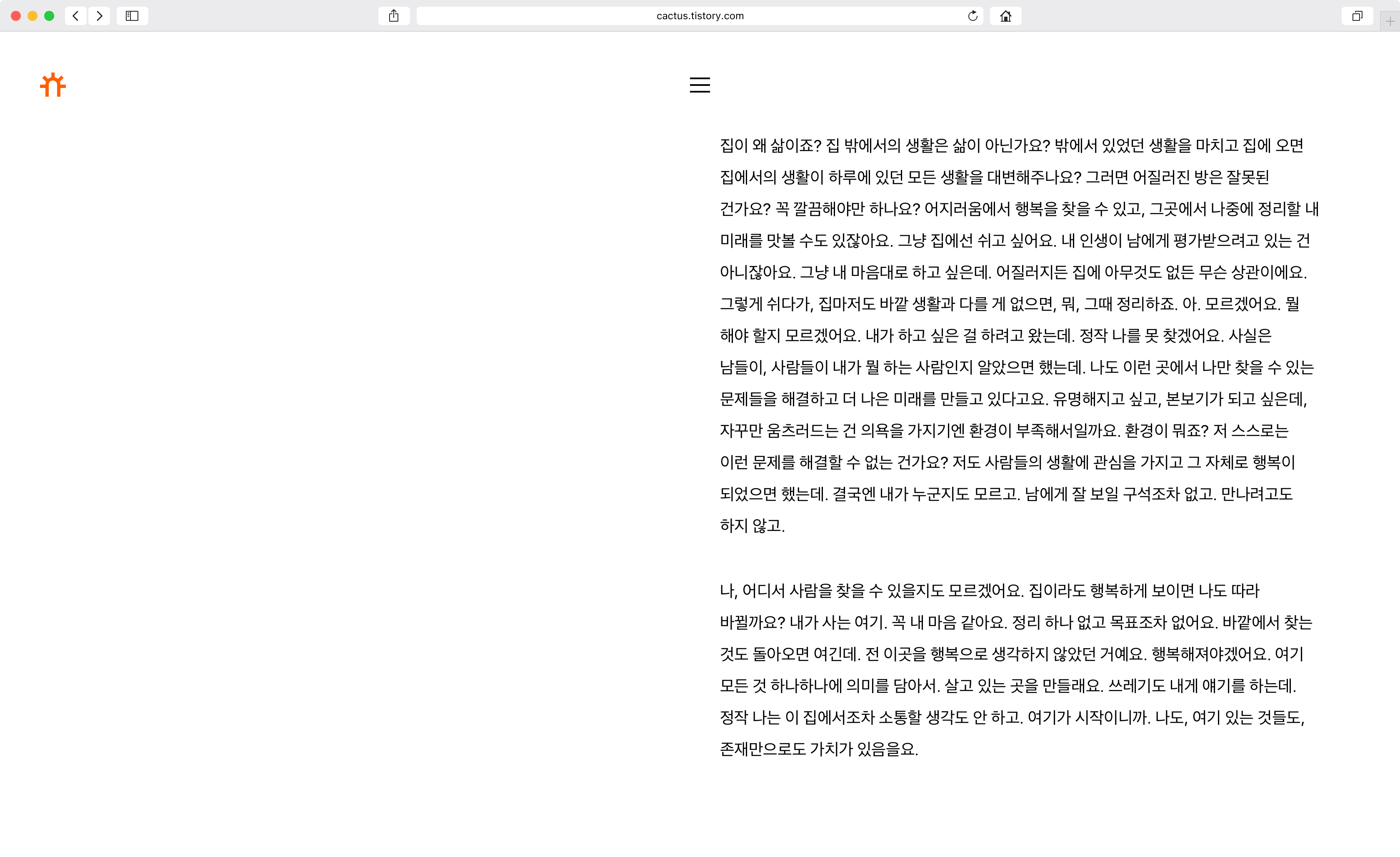 만들어진지 10년이 넘은 티스토리 기본 스킨을 보기 예쁘게 다듬은 이전 스킨은 시간이 지나며 제약이 많이 보였다. 첫째로는 모바일 지원이 안되는 고정형 너비로 설계되었고, 과거 가로 1024px, 1280px이 표준이었던 브라우저 크기가 시간이 지나고 1440px부터 2560px까지 확장되면서, 이제 고정형 너비로는 공간을 더는 실용적으로 활용하기 어렵다는 점이었다. 다음으로는 IE 6, 7에 맞춰 만든 스킨이었기 때문에, clearfix 등 과거의 산물을 아직까지 쓰고 있었고, 이제는 그런 제약들을 내 손으로 직접 해결할 수 있지 않을까 하는 것이었다.